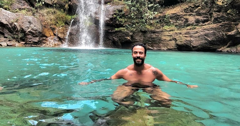 Passeios aquáticos: Vivencie hidromassagens naturais, cachoeiras incríveis, tobogãs e poços cristalinos na Chapada dos Veadeiros.