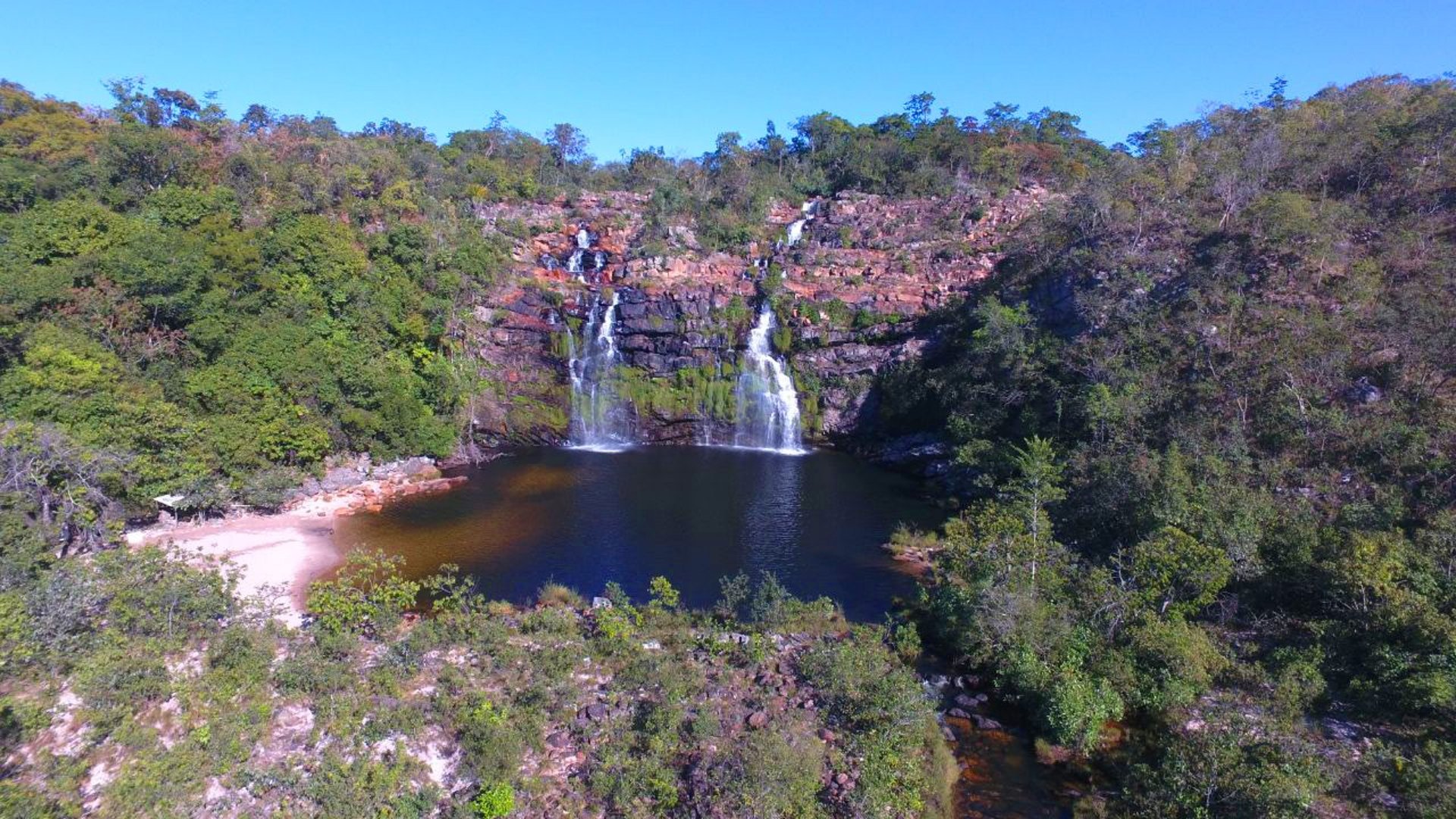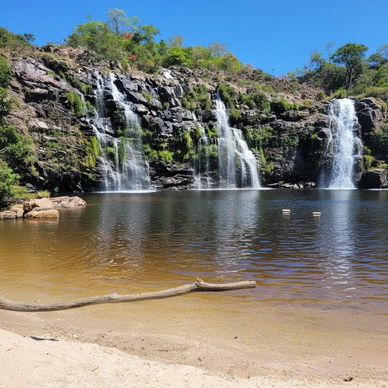 Poço cristalino e queda d’água majestosa.