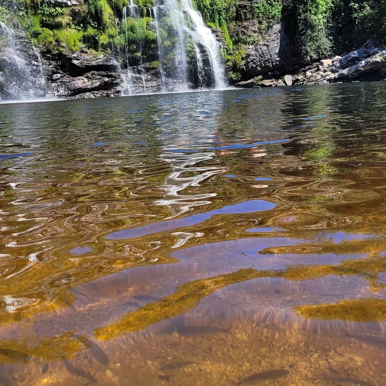 Passeios aquáticos: Vivencie hidromassagens naturais, cachoeiras incríveis, tobogãs e poços cristalinos na Chapada dos Veadeiros.
