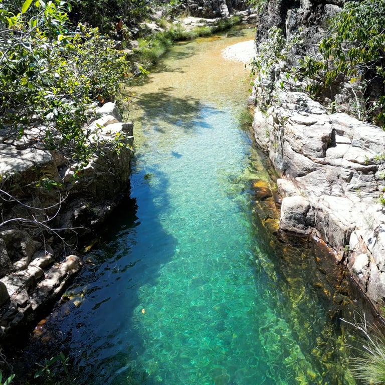Pouco explorado, mas incrivelmente fascinante, o Complexo de Águas Lindas & Canjica é um dos segredos mais bem guardados da Chapada. Suas trilhas levam a cachoeiras de águas verdes-esmeralda e a um cânion impressionante que culmina em uma piscina de borda infinita, oferecendo uma experiência única de conexão com a natureza.