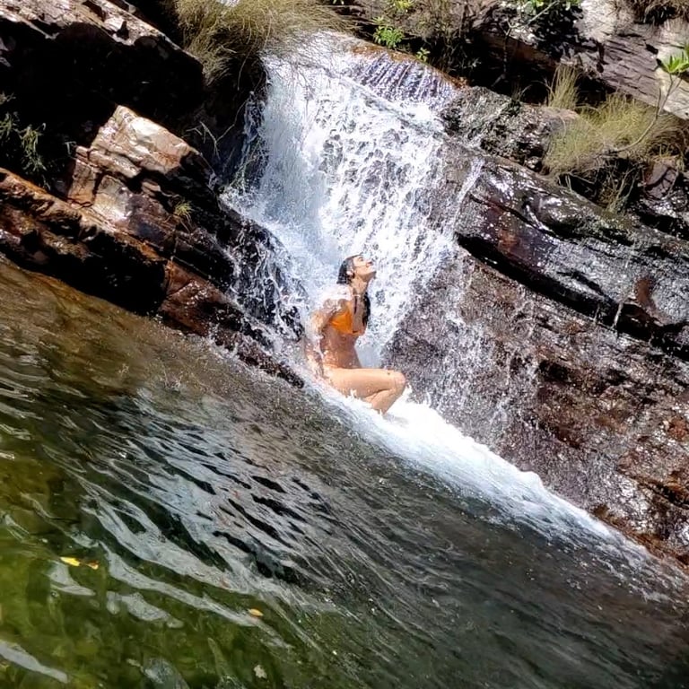 Passeios aquáticos: Vivencie hidromassagens naturais, cachoeiras incríveis, tobogãs e poços cristalinos na Chapada dos Veadeiros.