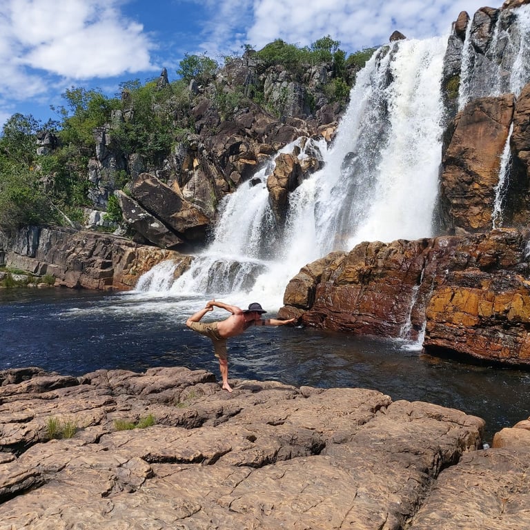 Passeios aquáticos: Vivencie hidromassagens naturais, cachoeiras incríveis, tobogãs e poços cristalinos na Chapada dos Veadeiros.