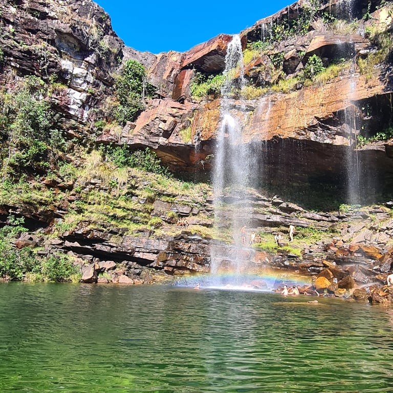 Passeios aquáticos: Vivencie hidromassagens naturais, cachoeiras incríveis, tobogãs e poços cristalinos na Chapada dos Veadeiros.