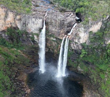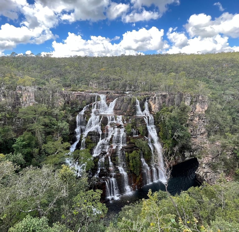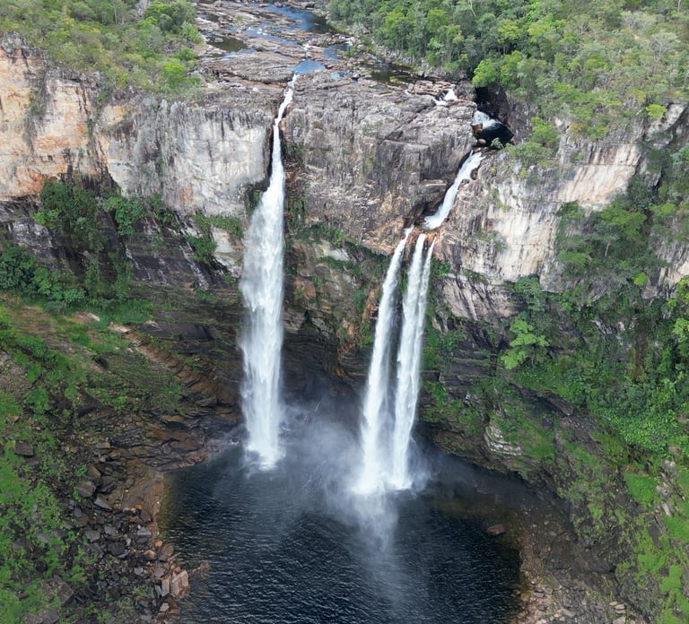 Três cachoeiras espetaculares, cada uma com sua própria beleza. Oferecendo diversas opções de trilhas e pontos de banho, estas cachoeiras são destinos populares entre os visitantes da Chapada dos Veadeiros. As águas claras e refrescantes, combinadas com as paisagens, tornam estas cachoeiras locais perfeitos para aventuras e momentos de relaxamento.