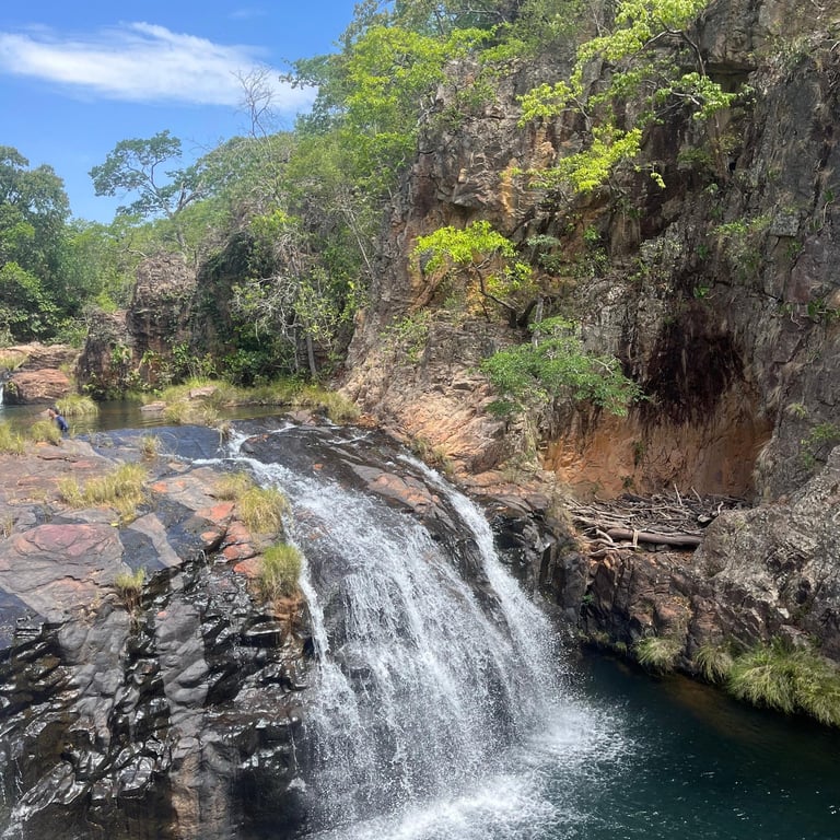 Passeios aquáticos: Vivencie hidromassagens naturais, cachoeiras incríveis, tobogãs e poços cristalinos na Chapada dos Veadeiros.