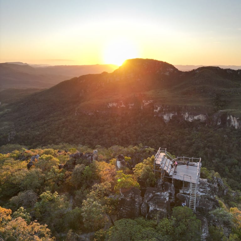 O Mirante da Janela é um dos pontos mais icônicos da Chapada, oferecendo vistas panorâmicas espetaculares do Parque Nacional e das Cachoeiras Saltos. A trilha até o mirante é desafiadora, mas a recompensa ao chegar ao topo é uma vista de tirar o fôlego, perfeita para contemplar o pôr do sol.