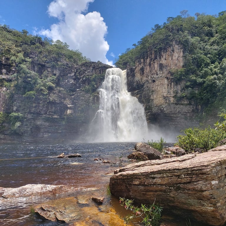 A Trilha Saltos, no Parque Nacional da Chapada dos Veadeiros, é um dos percursos mais icônicos da região. Esta trilha leva a algumas das cachoeiras mais impressionantes, como os Saltos do Rio Preto, com 120 metros de altura, e o poço da Cachoeira do Garimpão, o maior poço de cachoeira da América do Sul.