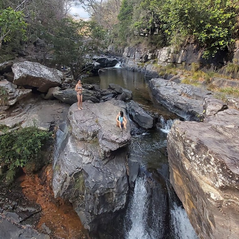 Passeios aquáticos: Vivencie hidromassagens naturais, cachoeiras incríveis, tobogãs e poços cristalinos na Chapada dos Veadeiros.