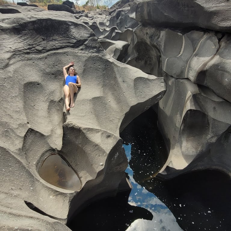 Formações rochosas esculpidas por milhares de anos de erosão. Um dos cenários mais icônicos da Chapada, o Vale da Lua parece outro planeta. A trilha é curta, mas o visual é impressionante. A água corre entre as rochas escuras formando piscinas, corredeiras e fendas que encantam todos os visitantes.